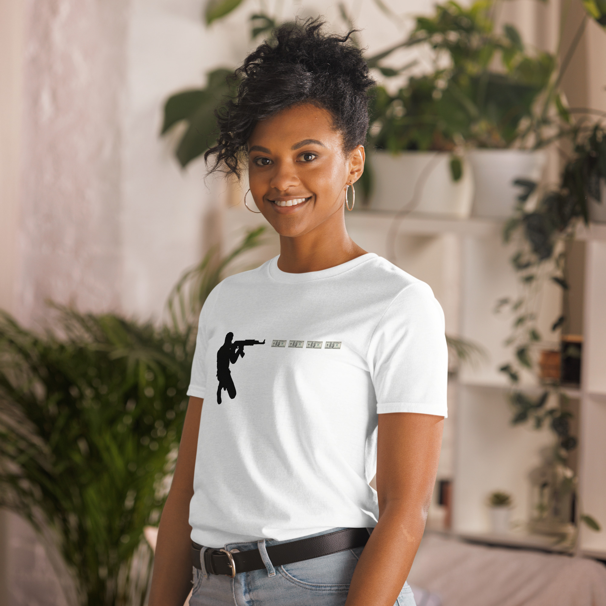You’ve now found the staple t-shirt of your wardrobe. It’s made of 100% ring-spun cotton and is soft and comfy. The double stitching on the neckline and sleeves add more durability to what is sure to be a favorite!